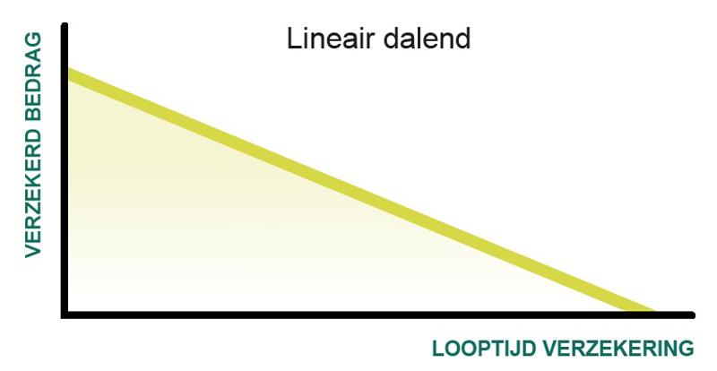 Een lineaire daling verloopt in een rechte lijn. Er wordt een rechte lijn getrokken vanaf het startbedrag van de overlijdensrisicoverzekering tot het eindbedrag, volgens die lijn daalt het verzekerde bedrag.